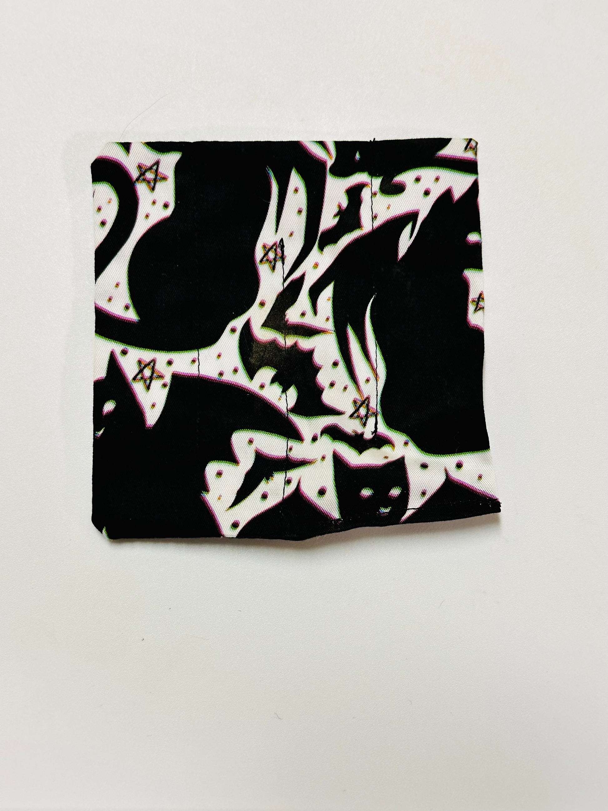 These are made of cotton with cotton thread.
